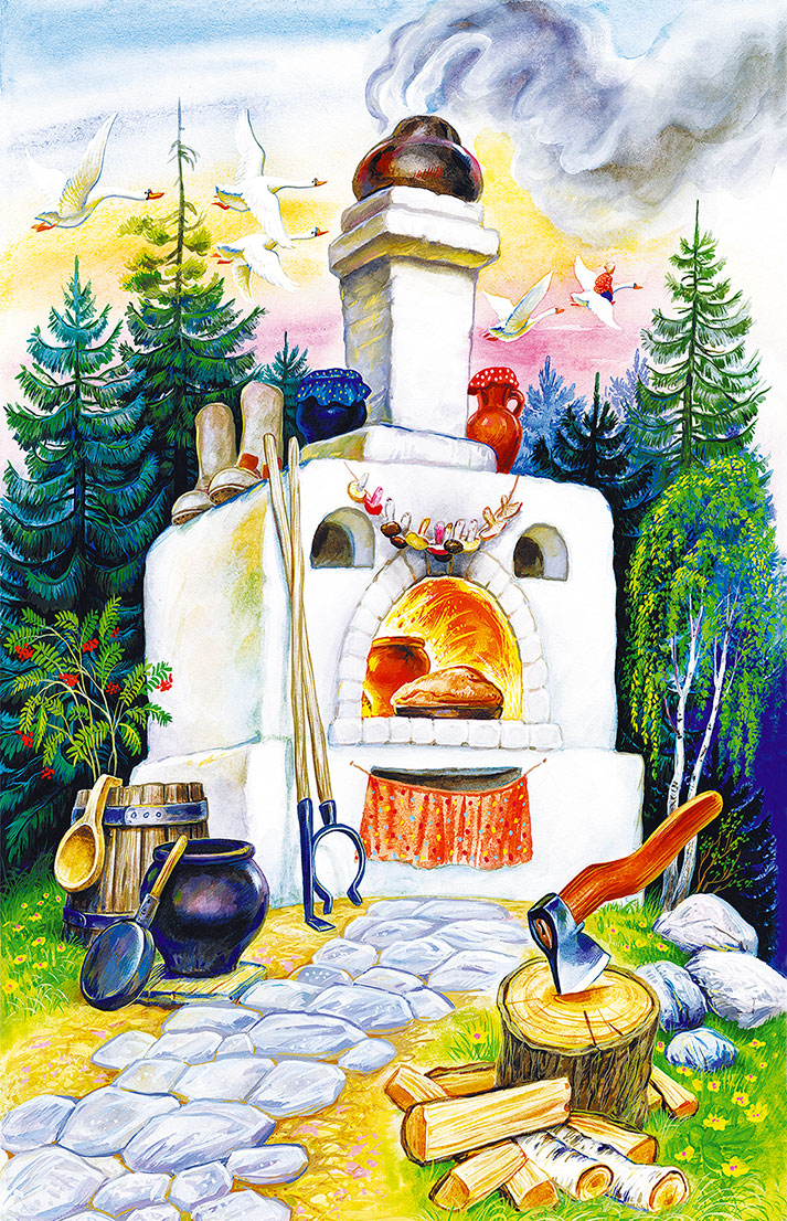 – Печка, печка, скажи, куда гуси-лебеди полетели?