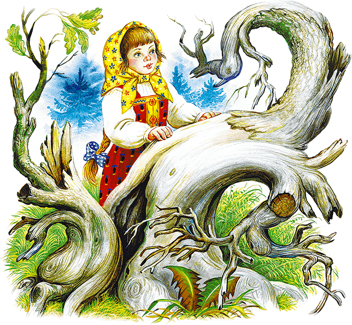 – Гуси-лебеди! Летите в погоню! Сестра братца унесла!..