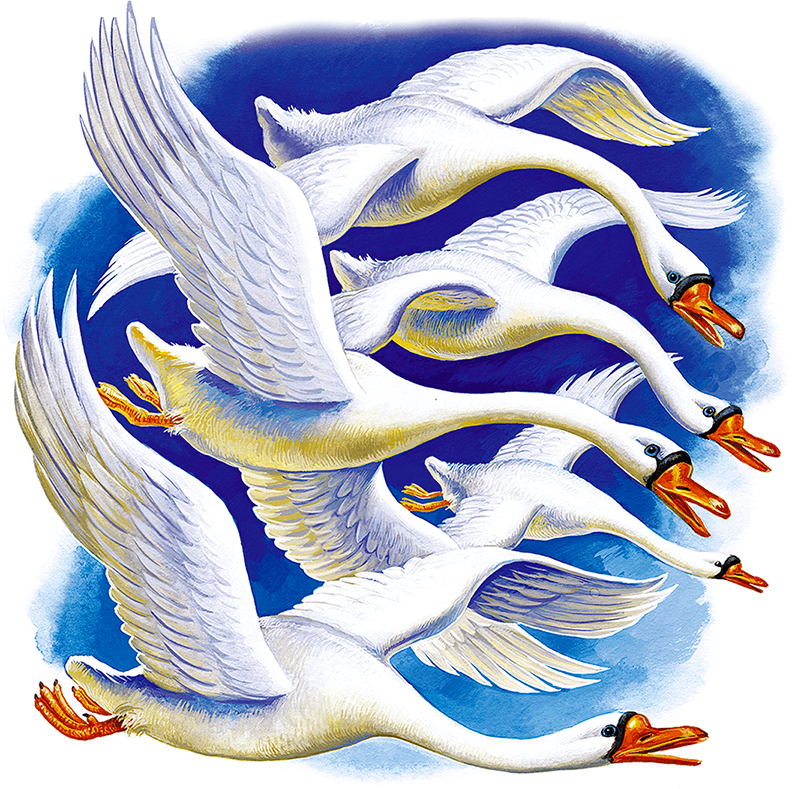 Налетели гуси-лебеди, подхватили мальчика, унесли на крыльях.