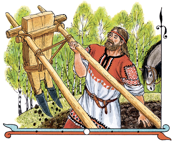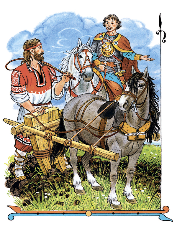 – Ох, неладное дело мы сделали, в борозде соху оставили. Ты пошли молодцов-дружинников чтобы сошку из борозды выдернули, землю бы с неё вытряхнули, положили бы соху под ракитовый куст.