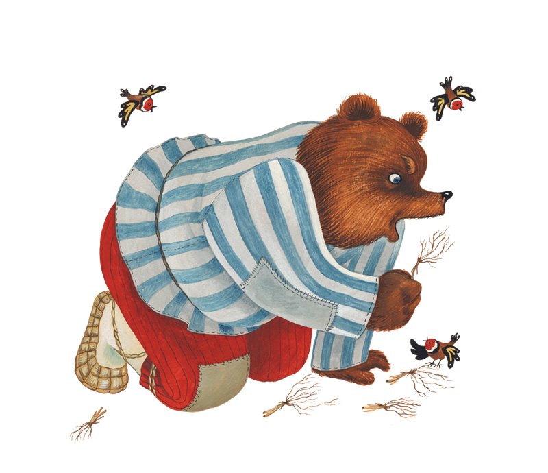 Пришло время: старик репу копает, а Медведь из лесу вылезает.