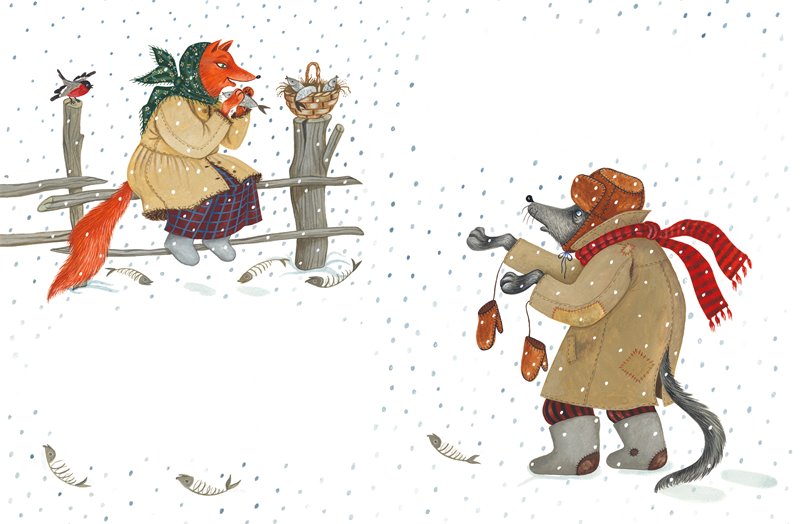 – Ну ладно, – говорит Лиса, – я тебя научу: ступай ты на реку и спусти хвост в прорубь: рыба сама тебе на хвост нацепляется. Да смотри: сиди подольше, а то не наловишь.