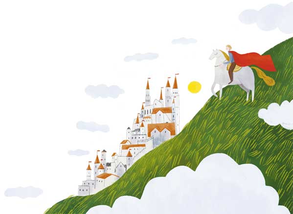 – Отнеси меня к облакам и обратно! – приказал он. Мгновенно ковёр поднялся и взмыл в небо, унося с собой принца, достиг облаков и вернулся обратно на землю.