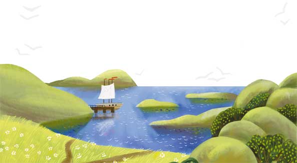 Пепельный Парень сделал так, как велел старичок. Когда он проснулся, то увидел рядом с собой красивый корабль с драконьим носом и развевающимся парусом.
