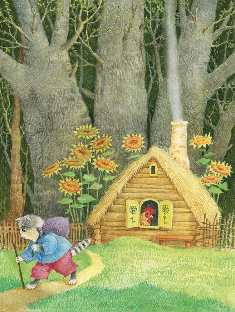 Жил-был кот с петухом. Кот в лес ходил за дровами, а петух по дому хозяйничал.