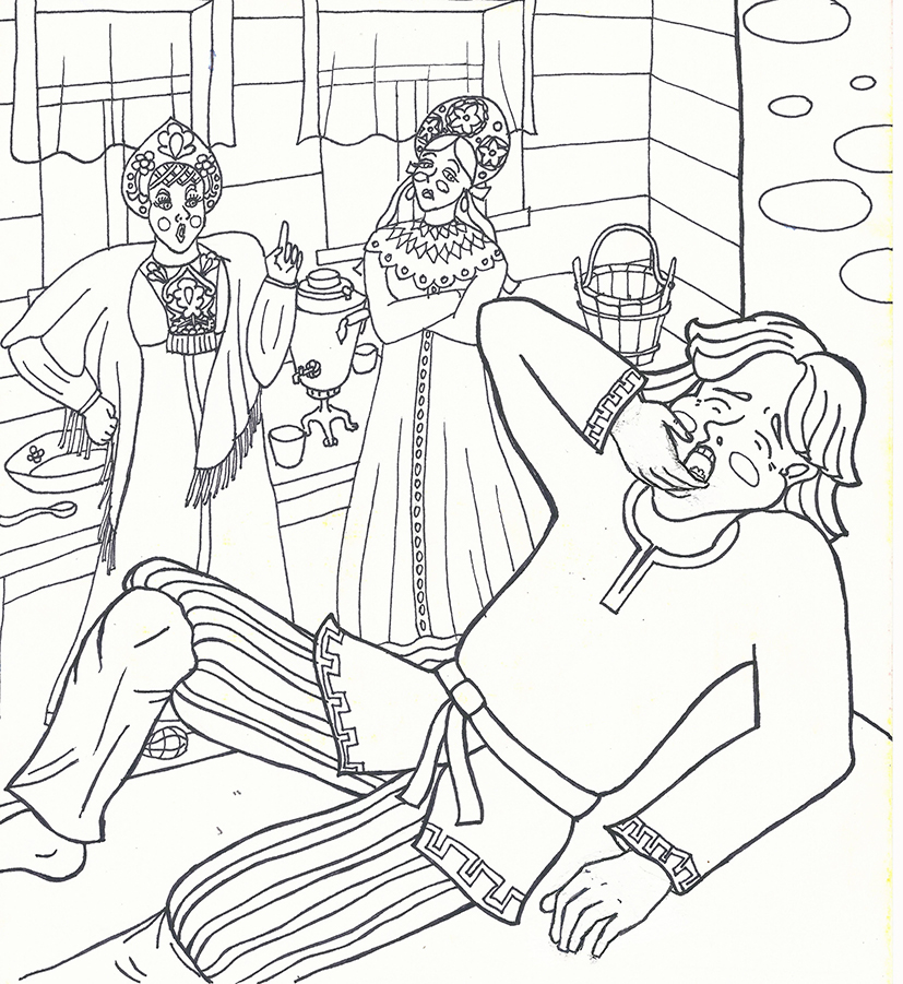Идут ведра по деревне, народ дивится, а Емеля идет сзади, посмеивается… Зашли ведра в избу и сами стали на лавку, а Емеля полез на печь. Прошло много ли, мало ли времени – невестки говорят ему: