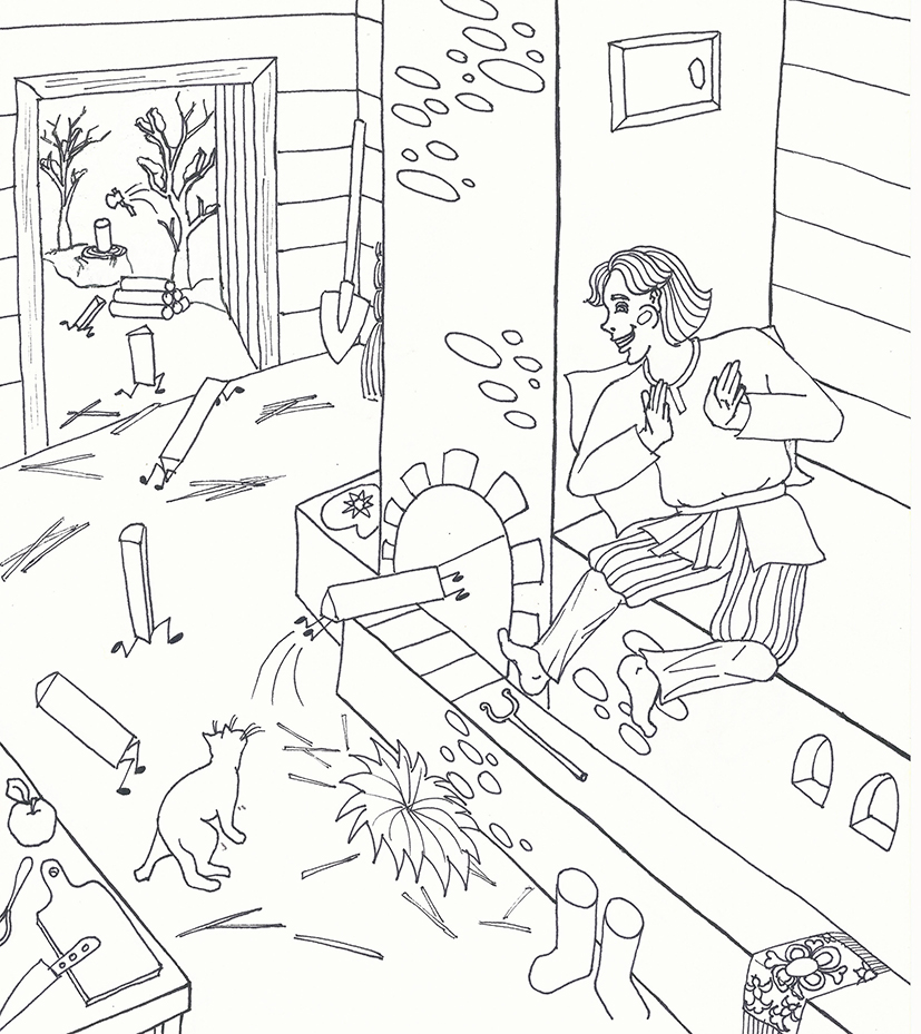 Емеле неохота слезать с печи. Вспомнил он про щуку и потихоньку говорит: