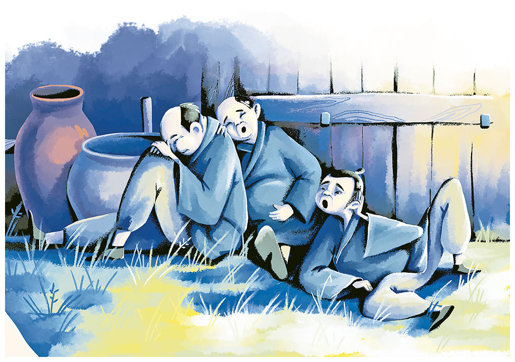 Но утром прознал про всё староста ямыня, и до того рассвирепел, что искры из глаз посыпались. Собрал он своих караульщиков и бегом побежал в деревню, чтобы проучить крестьян.