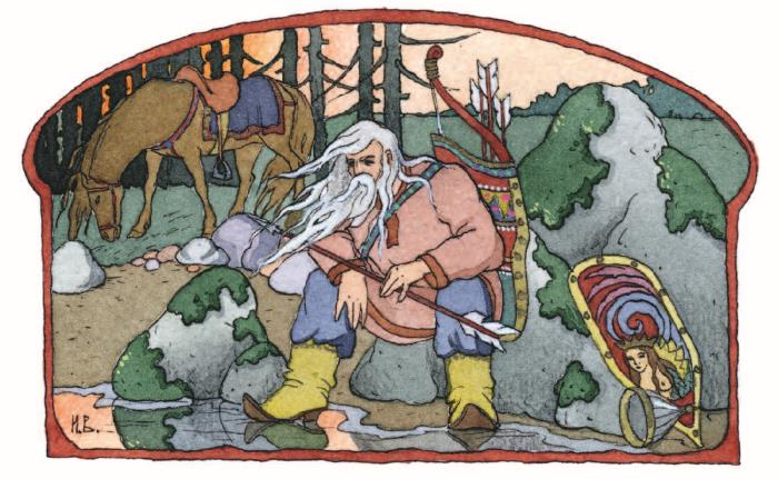 Призадумался Святогор. Не хочется ему жениться на больной. «Дай, – думает, – съезжу в царство Поморское и, если правду говорит кузнец, убью девицу, вот и не придётся на ней жениться».