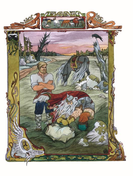 – Спасибо, Вольга Святославич, – отвечал оратай, – мне в моём крестьянском деле без Божьей помощи не обойтись. А ты куда путь держишь?