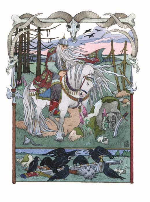 Потом обернулся серым волком, пробрался в конюшни и передушил всех коней.
