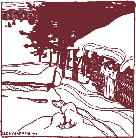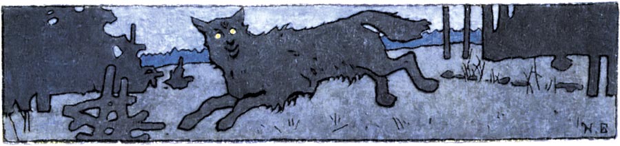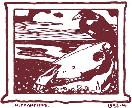 Иван-царевич прочёл эту надпись и поехал в правую сторону, держа на уме: хотя конь его и убит будет, зато сам жив останется и со временем может достать себе другого коня. Он ехал день, другой и третий – вдруг вышел ему навстречу пребольшой Серый Волк, разорвал коня Ивана-царевича надвое и пошёл прочь в сторону.