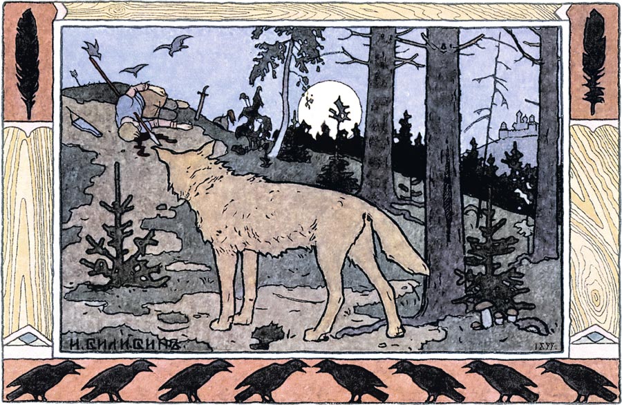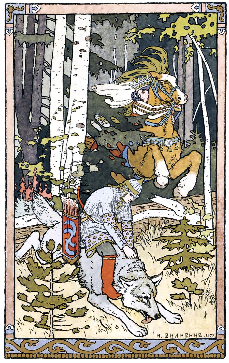 – Жаль мне тебя, Иван-царевич, что ты пеш изнурился; жаль мне и того, что я заел твоего доброго коня. Добро! Садись на меня, на Серого Волка, и скажи, куда тебя везти и зачем?