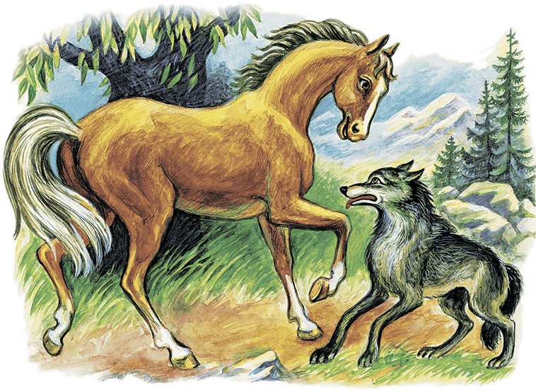 – Как же мне не печалиться, серый волк? Остался я без доброго коня.