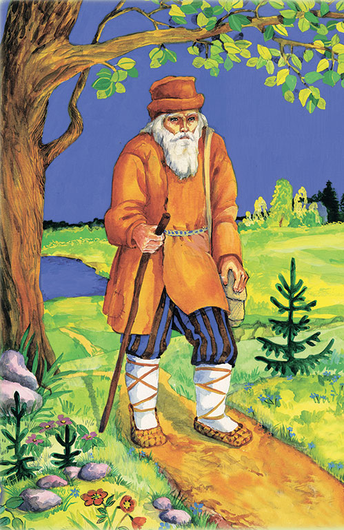 Ходил отец весь день, а пёрышка не нашёл. Выехал из города, а навстречу старенький старичок.