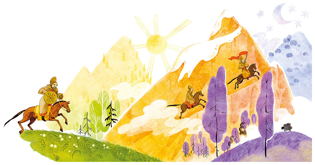 Жил на Алтае очень богатый хан. Звали его Ер-Боко. Широкий, как кедр, огромный, как алтайский медведь. Добра у него было – видимо-невидимо, ни в одном аиле[1] не скроешь. Скота – как пчёл в улье, не сосчитаешь. Сундуки с сокровищами вокруг его аила громоздились до самого неба, горы алтайские закрывали.