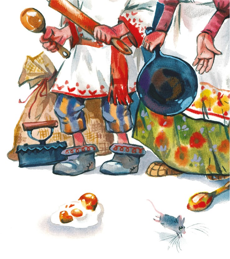 Дед бил, бил – не разбил. Баба била, била – не разбила. Мышка бежала, хвостиком махнула, яичко упало и разбилось.