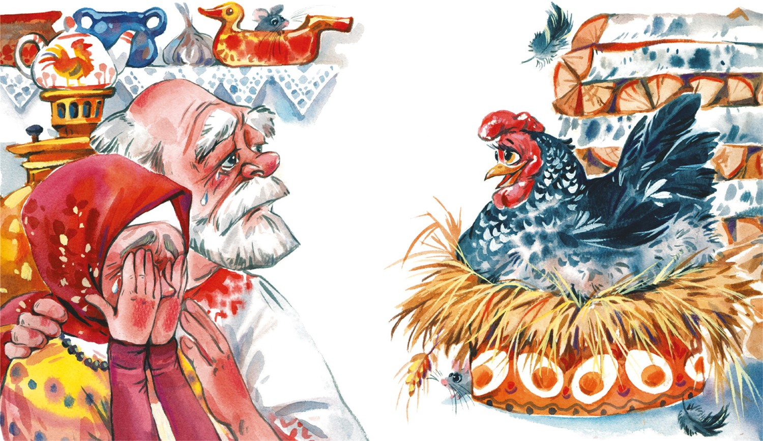 – Не плачь, дед, не плачь, баба, – снесу я вам яичко другое, не золотое, а простое.