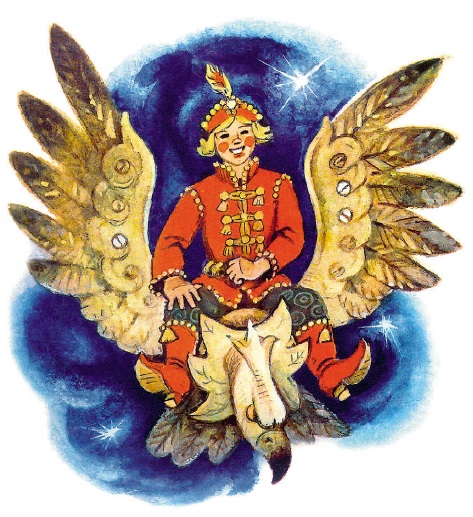 А царевич на деревянном орле всё дальше и дальше летит.