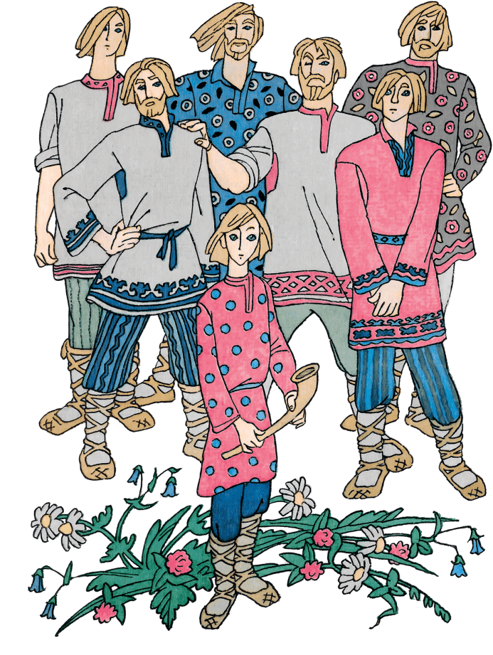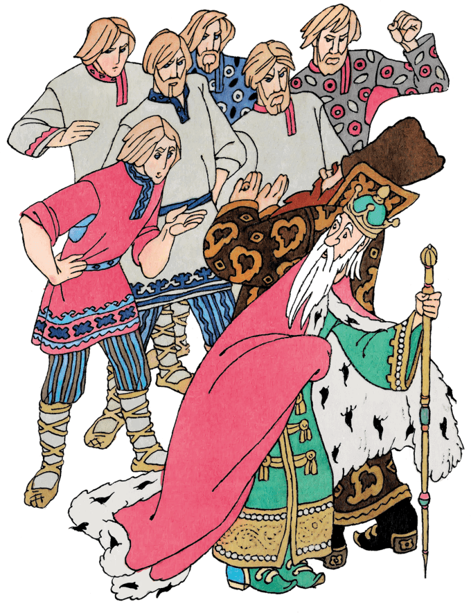 Жили-были семь братьев, семь Симеонов – семь работников. Вышли они раз на поле пашню пахать, хлеб засевать. В ту пору ехал мимо царь с воеводами, глянул на поле, увидал семь работников, удивился.