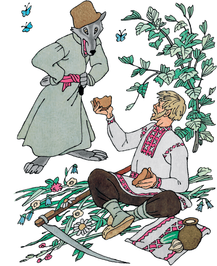 Как-то один крестьянин косил на лугу траву. Косил с утра, а к полудню приморился и присел передохнуть. Только достал из мешка хлеб, как из лесу выходит голодный волк.