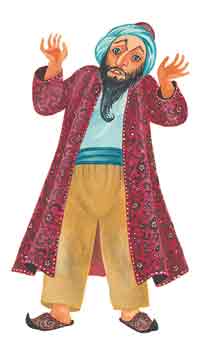 На другой день, в назначенный час, мнимый дядюшка действительно явился к матери Аладдина. Он почтительно поклонился ей и воскликнул:
