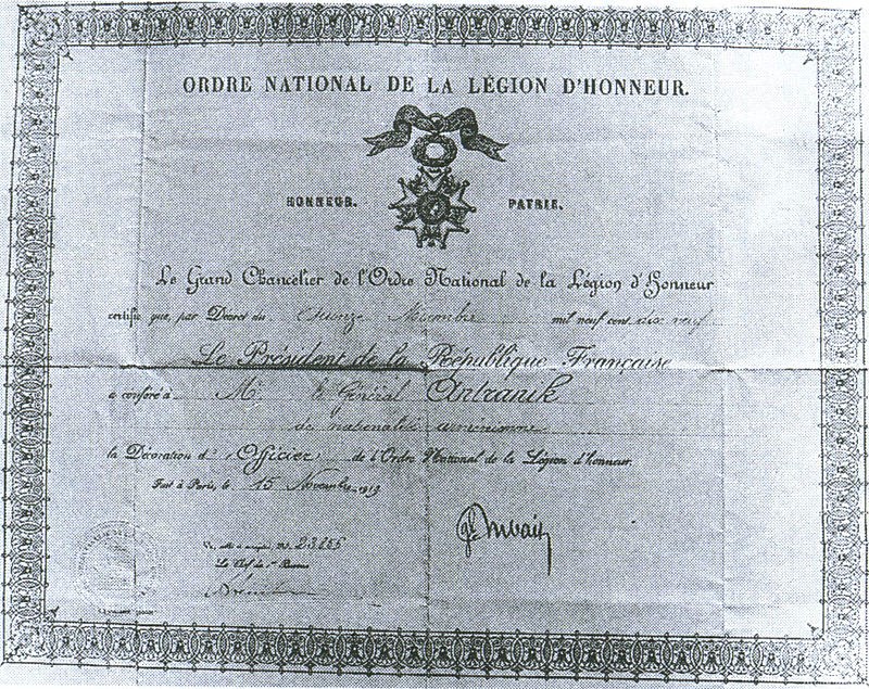 From 1919 to 1922, Andranik traveled around Europe and the United States seeking support for the Armenian refugees. He visited Paris and London, where he tried to persuade the Allied powers to occupy Turkish Armenia. In 1919, during his visit to France, Andranik was bestowed the title of Legion of Honor Officier by President Raymond Poincaré. In late 1919, Andranik led a delegation to the United States to lobby its support for a mandate for Armenia and fund-raising for the Armenian army. He was accompanied by General Jaques Bagratuni and Hovhannes Katchaznouni. In Fresno, he directed a campaign which raised US$500,000 for the relief of Armenian war refugees.