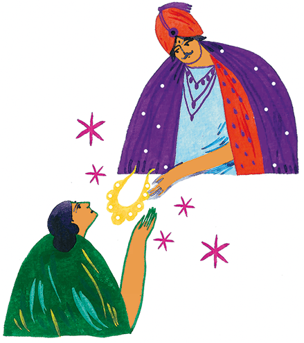 Царь преподнёс ожерелье жене, и та несказанно обрадовалась столь изумительному подарку.