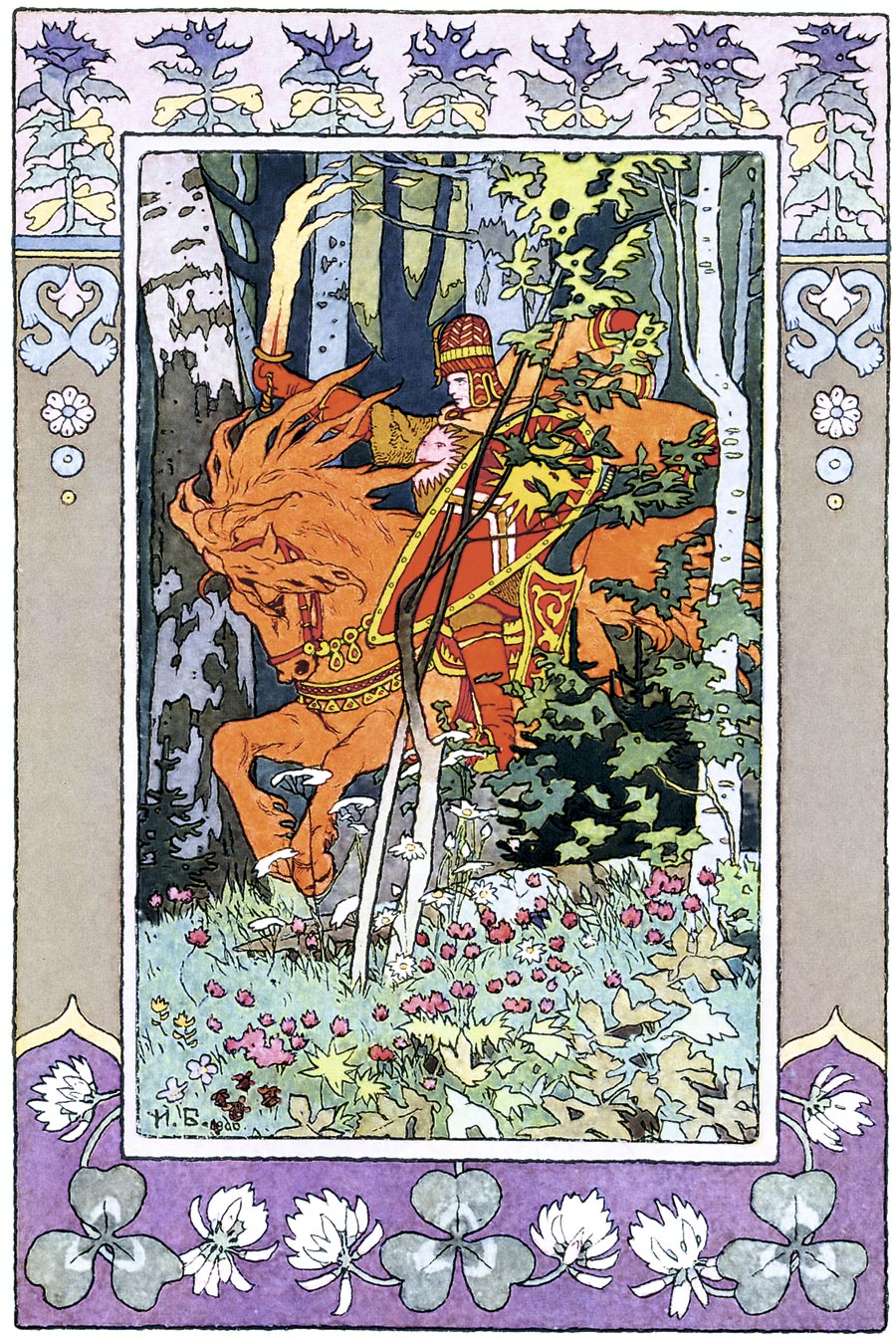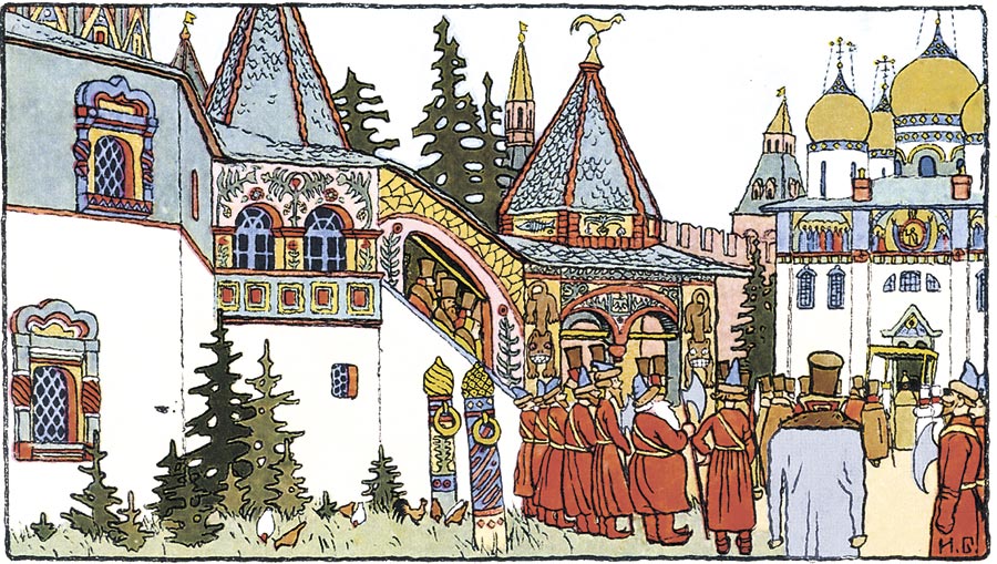 Подлетела к царскому крыльцу золочёная коляска, в шесть лошадей запряжена, и вышла оттуда Василиса Премудрая – такая красавица, что ни вздумать, ни взгадать, только в сказке сказать! Взяла Ивана-царевича за руку и повела за столы дубовые, за скатерти браные.