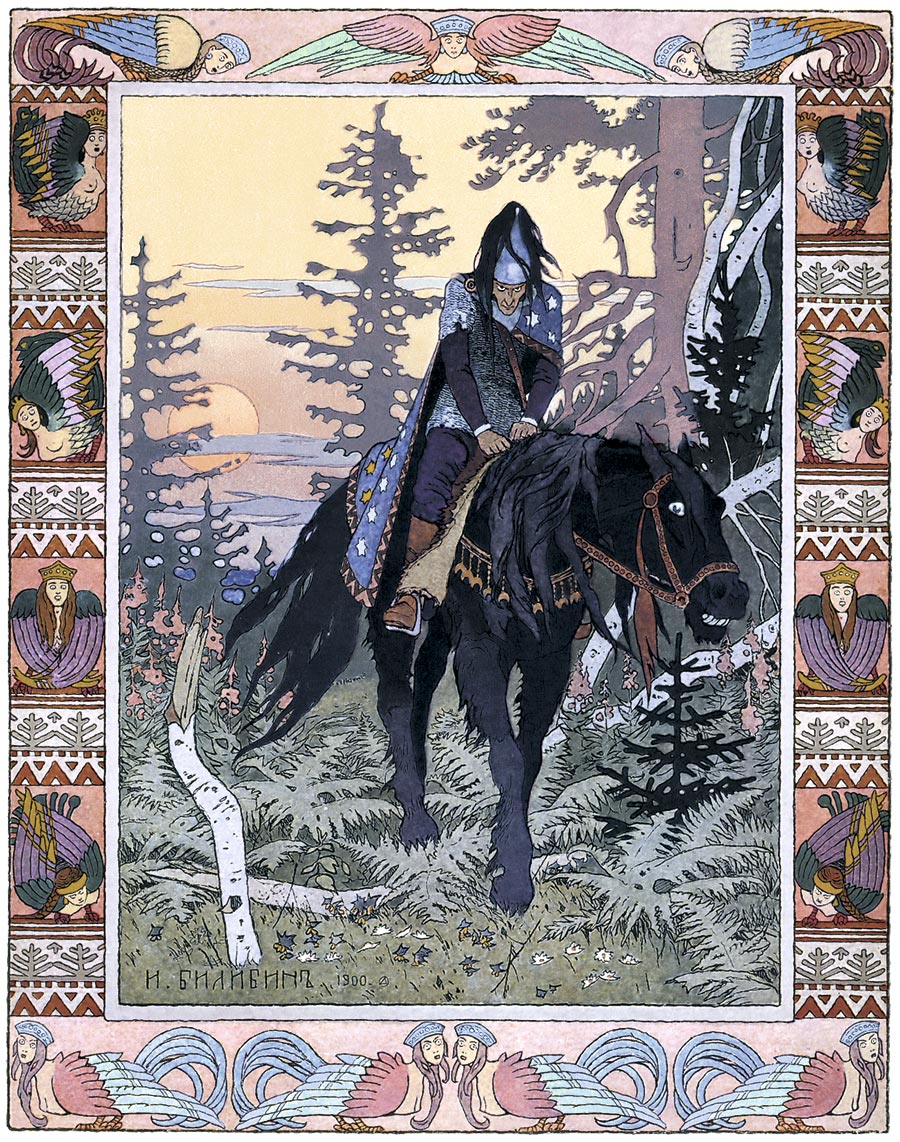 Вдруг едет опять всадник: сам чёрный, одет во всём чёрном и на чёрном коне