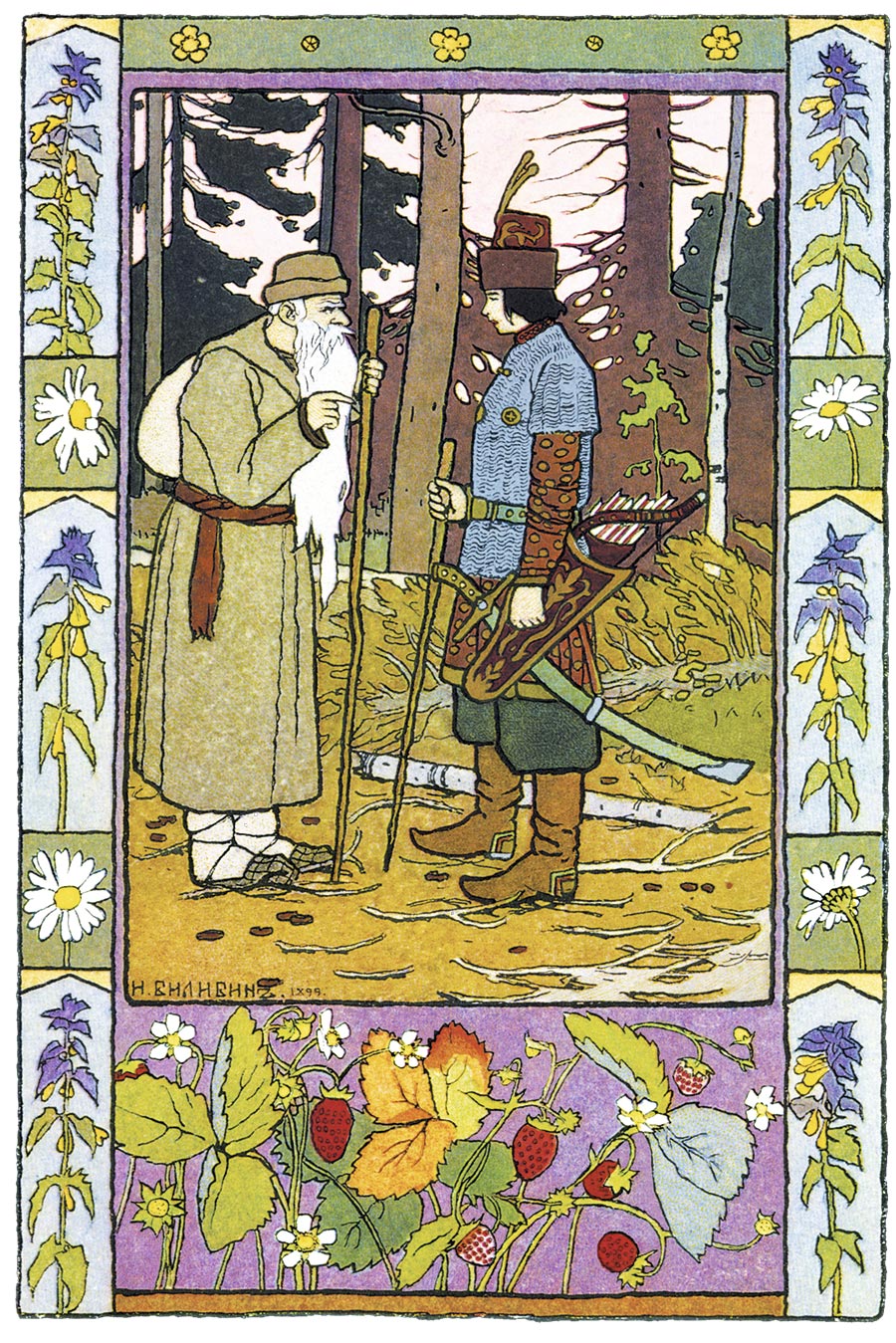 Иван-царевич горько заплакал, поклонился на все на четыре стороны и пошёл куда глаза глядят. Шёл он близко ли, далеко ли, долго ли, коротко ли – попадается ему навстречу старый старичок.