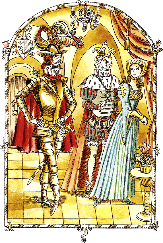 – Ну Рыжий Витязь, великий подвиг ты совершил, но и я у тебя в долгу не останусь, – сказал король самозванцу. – Три дочери у меня, выбирай себе в жены любую, а в приданое треть моего государства получишь.