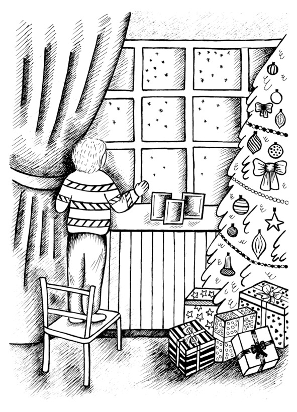 Ярослав надел свой любимый костюм, как у папы: строгие серые брюки, белую рубашку и бабочку. Мальчик ждал Деда Мороза. Взрослые сидели за столом и играли в «Диксит», разговаривали, а Ярослав смотрел в окно.