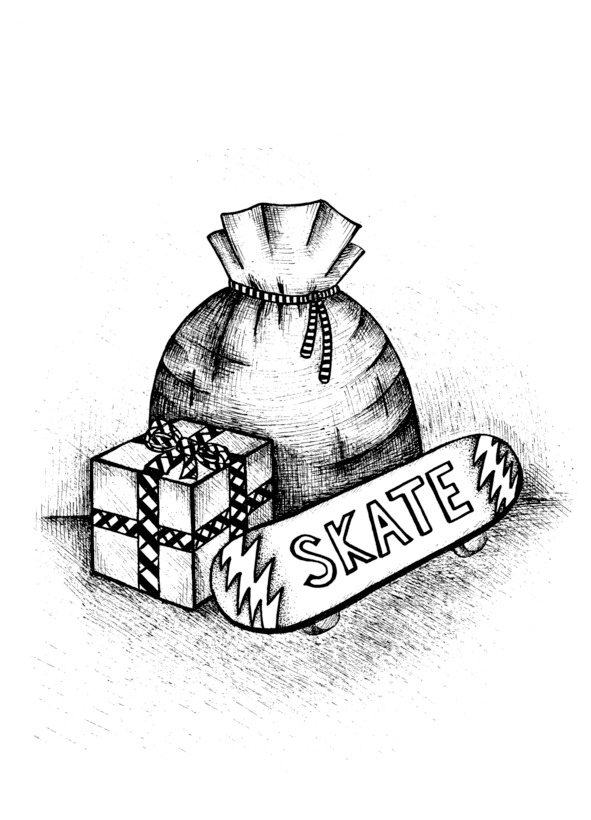 От мешка пахло морозом и чудесами, от него шёл пар. Дедушка развязал верёвочку: сверху лежал синий скейт, о котором так мечтал мальчик.