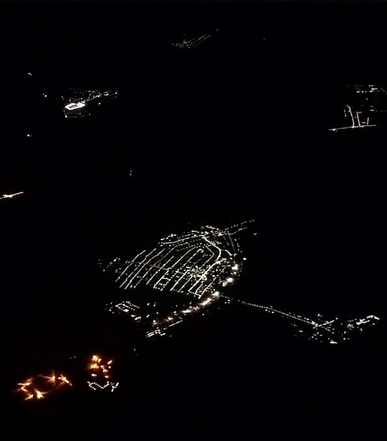 поменялась с детьми, чтобы посмотреть в темноту. Когда пролетали над большими городами, то внизу были огоньки. Очень красиво. И снова я пыталась снять всё на телефон, но не всегда выходило.