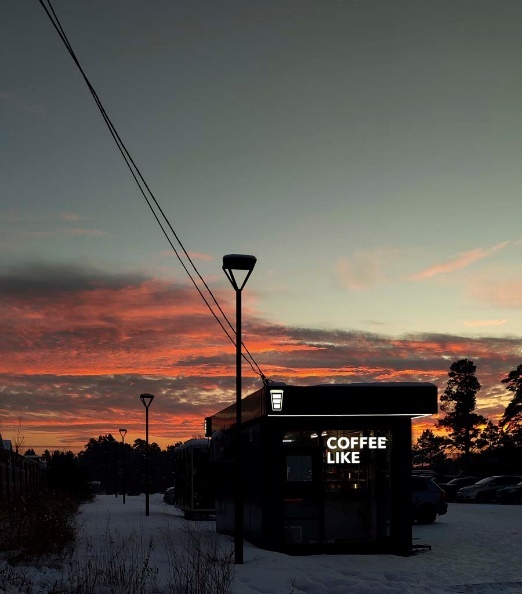 Знаете, что я заметила в первую очередь, кроме снега и мороза? Небо. Оно здесь невероятное! Светлое, чистое, искристое, даже когда нет солнца. Хотя солнце тоже было, такое ласковое и приятное. Мы вышли к вечеру, и я не могла налюбоваться и на закат, который отливал всеми оттенками красного, жёлтого, белого и синего. Это невероятная красота, до слёз и задержки дыхания. Я тот человек, который обожает закаты. У меня в телефоне и на фотоаппарате миллионы закатов. Они все разные и необычные. Я как тот паровозик из Ромашково, который останавливается, чтобы посмотреть красоту. Не могу не обращать внимания на такое. Это космос, который длится недолго, но наполняет душу.