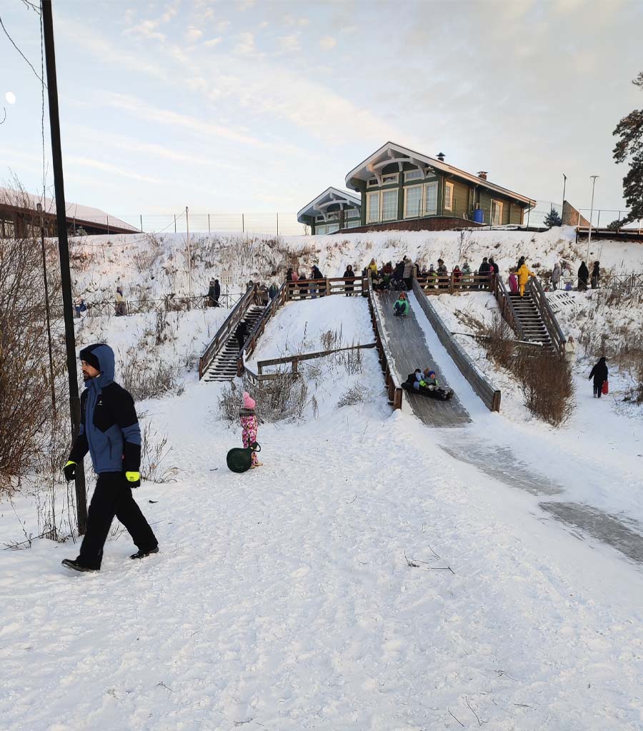 Крики, визги, смех, шарканье ледянок и тюбингов сначала о горку, а потом о снег. Дети набрали такую скорость, что мне иногда было страшно. Я так и не решилась на ней прокатиться. Да и не хотелось, честно говоря.