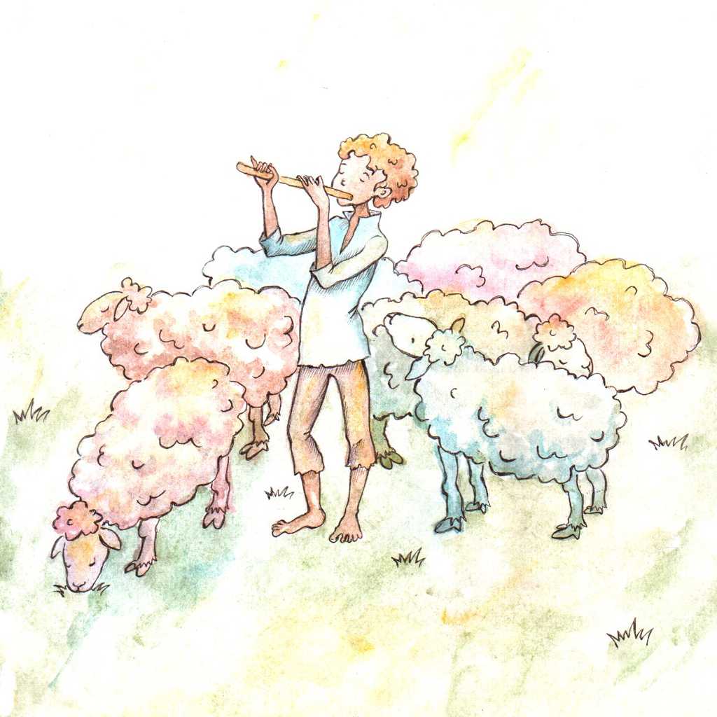 – Заглядывайте в гости, – улыбнулся Мальчик Фантазия, – Пойдемте, овечки, – и он, заиграв на флейте, повел свое кудрявое стадо к реке.