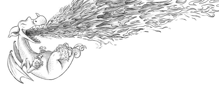 – Мои штаны! – вскричал папа, когда зелёная дракониха вычихнула огненный шар на его только что выстиранные брюки.