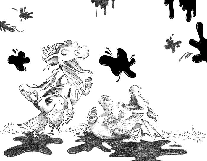 Драконы ПЛЯСАЛИ и ПЛЕСКАЛИСЬ, как утята, в гигантской грязной луже, но тут на подъездной дорожке вдруг взвыла сирена.
