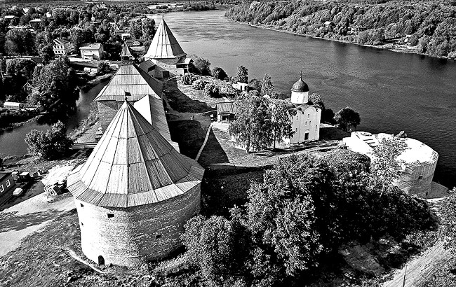 Если этой книге суждено начаться с вопроса, лучше задать его там, где можно максимально отрешиться от проблем и суеты современности. И пусть это будет бывший город, а ныне село Старая Ладога на берегу Волхова, в паре десятков верст от его устья – места, где былинная река впадает в легендарное озеро. Голубое небо, белые облака, пронзительно-синяя вода, зелень травы и деревьев – и вот, как чудесный орнамент, раскрывается невероятная, дух захватывающая панорама. Посредине – крепость, настолько осязаемо старинная, что даже не верится в то, что из руин ее подняли в 60-е – 70-е годы ХХ века (советские реставраторы знали свое дело). По левую руку – Никольский монастырь, хоть и подпорченный «псевдорусскими» башенками, но сохранивший собор XVII века. По правую руку – другой монастырь, Успенский, тут храм аж XII столетия; еще правее – Предтеченская церковь бывшей Ивановской обители. Дивное сочетание крепостной мощи и пасторали! Здесь, как со времен Нашего Всего принято говорить, русский дух.