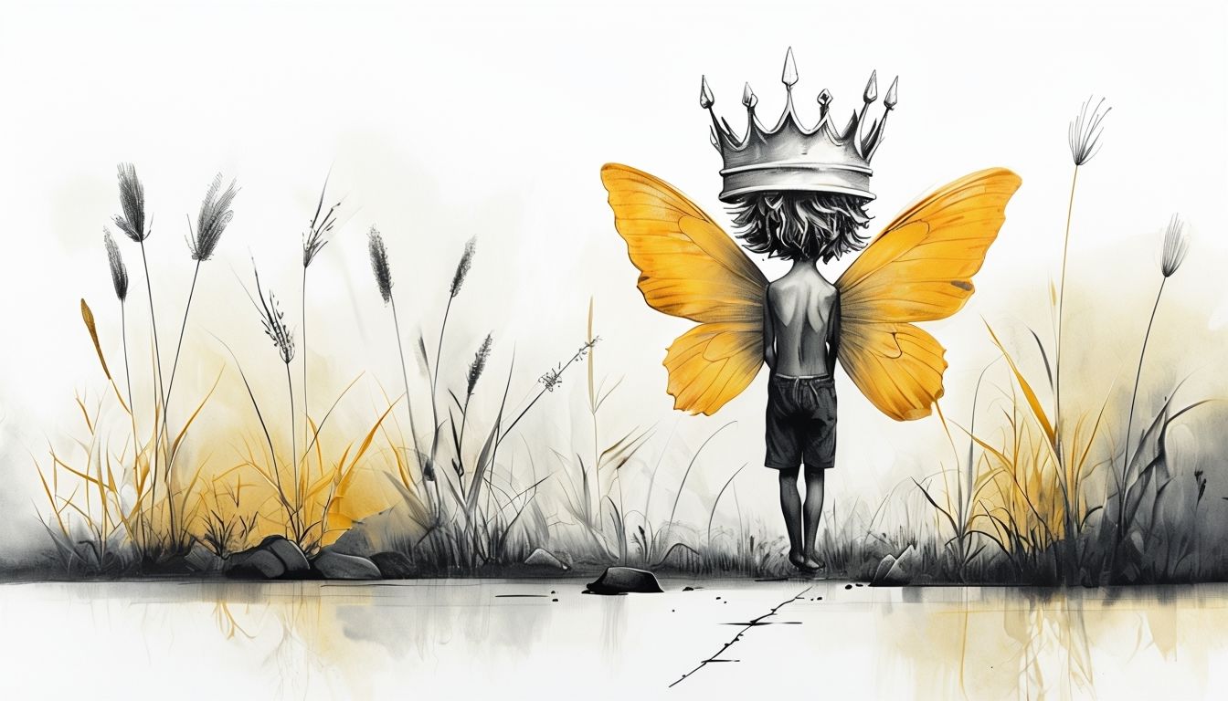 Феи окружили короля, начав распевать древние заклинания. Их голоса сливались в мелодию, наполненную магической энергией. Кандалы начали таять, освобождая короля. Когда последние оковы исчезли, король сделал глубокий вдох и расправил крылья. Его одежда превратилась в блестящие зеленые и золотые наряды, украшенные драгоценными камнями.