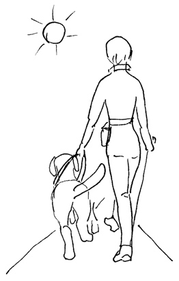 Многим, кто видит нас на маршруте, а именно так называется наш путь, думают, что мы просто гуляем. Я часто слышу: «Какая у вас замечательная работа – гуляете весь день на воздухе, да еще с собакой». Я согласна – работа у меня замечательная. С виду абсолютно незаметная. Я хожу с собакой по многу часов в день, порой проходя больше полутора десятка километров, шагомер обычно сдается на 16 тысячах шагов, и собака при этом вовсе не гуляет. Она меня ведет. Ведет по маршруту от одного ориентира до другого, от начального к конечному, при этом останавливаясь на каждом препятствии и выполняя все нужные повороты, следя за тем, чтобы я не задела ничего, не ударилась о припаркованные машины, не прошла по колодезным люкам. И еще во множестве ситуаций, что встречаются на маршруте, дает мне возможность сориентироваться и остаться в живых или не покалечиться.