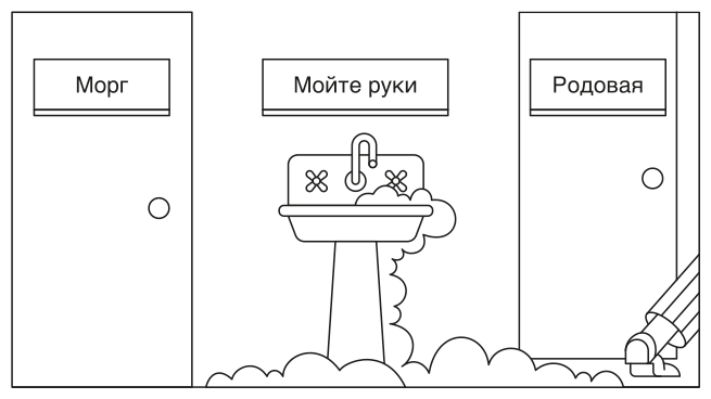 Конечно, Игнаца очень тревожила такая ситуация. Он заметил, что в одном из отделений госпиталя женщины умирали после родов почти в три раза чаще, чем в другом. Разница была в том, что в первом учились и работали врачи и студенты-медики, а во втором – только акушерки. Он предположил, что всему виной что-то, что делают врачи и студенты-медики на обучающих курсах. И это что-то нашлось. Каждый день они начинали с патологоанатомического исследования женщин, умерших от послеродовой горячки. А затем, не вымыв рук, отправлялись прямиком в родильные палаты и проводили вагинальные исследования пациенток. Акушерки в другом отделении ни тем, ни другим не занимались, они только принимали роды.