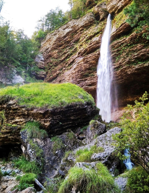 И вот от нашей хорошей знакомой – Вероники, которая давно живёт в Словении и работает гидом, мы узнали о водопаде под названием Перичник. Он двухэтажный, к нему можно довольно близко подобраться. Мощный. Невероятно красивый. Есть в нём и в окружающих его видах что-то первобытное, будто совсем не тронутое человеком.