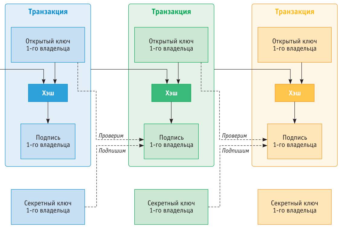 Рис. 4. Bitcoin как последовательность цифровых подписей