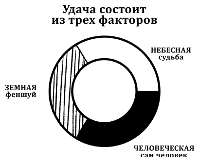 Если всю удачу принять за 100 %, то на каждый вид придется примерно по 33,3 %. То есть в ваших руках может оказаться целых 66,6 %, если вы начнете действовать и будете применять фэн-шуй! Это ясно показывает, насколько сильно наша жизнь зависит от нас самих. Не от обстоятельств жизни, погодных условий или других людей, а от нас самих. А если вы еще и по астрологической карте везунчик, то на вашей стороне окажутся все 100 % удачи!