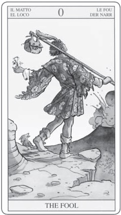 У Шута Уэйта хорошая интуиция, ведь рядом с ним пес, помогающий предчувствовать угрозу. Это верный друг, который поддержит в трудной ситуации. Но в колоде Нью Вижн собака почти не видна. Отсутствует и изображение Солнца, символизирующее Божественную поддержку. Шут Нью Вижн далеко не всегда слышит свою интуицию, даже если она посылает ему подсказки. Он больше напоминает Глупца, живущего в своем мире, не реагирующего на привычные для обычного человека знаки и сигналы. И совсем не факт, что притормозить на краю его заставило завораживающее зрелище извергающегося вулкана. Мы не видим его лица, и можем лишь гадать, что оно сейчас выражает, – изумление, страх, блаженство, беззаботность? Или этот странный путник просто замечтался и застыл на мгновенье, не замечая ни пропасти, ни вулкана?