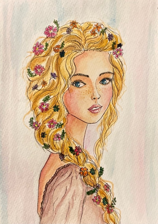 Кто же это? Добрая волшебница? Фея? – думал принц. Девушка заметила, что кто-то наблюдает за ней и повернулась в сторону Фредерика. Необыкновенная красавица смотрела на него согревающим взглядом сияющих глаз цвета небесной лазури. На нежной фарфоровой коже проступал румянец. Фредерик не мог отвести глаз от необыкновенной красоты девушки.