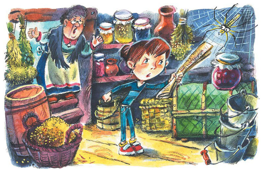 – Ух ты! – потянулась Даша к пузатой банке с бордовыми ягодами, которая пряталась за пучком мяты и сухими ромашками. – Ой, паук! – завизжала она и с перепугу упала на составленные в углу вёдра.